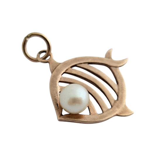 10ct Rose Gold Fish with Pearl Charm l 2.0 cm 2.2 g