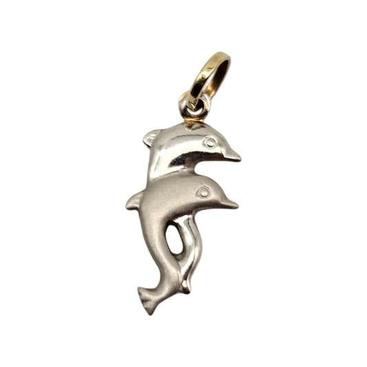 14ct 585 Yellow & White Gold Dolphins Pendant L 1.7 cm 0.7 g.