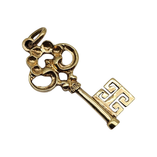 14ct 585 Yellow Gold Fancy Key Charm L 2.2 cm 1.9 g.