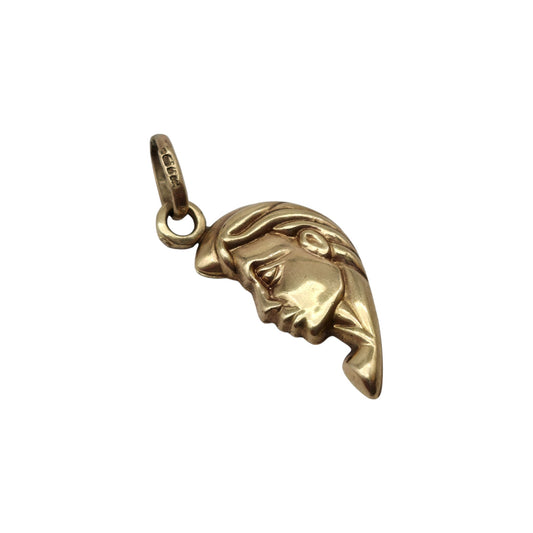 9ct 375 Yellow Gold Face Charm L 1.8 cm 0.9 g.