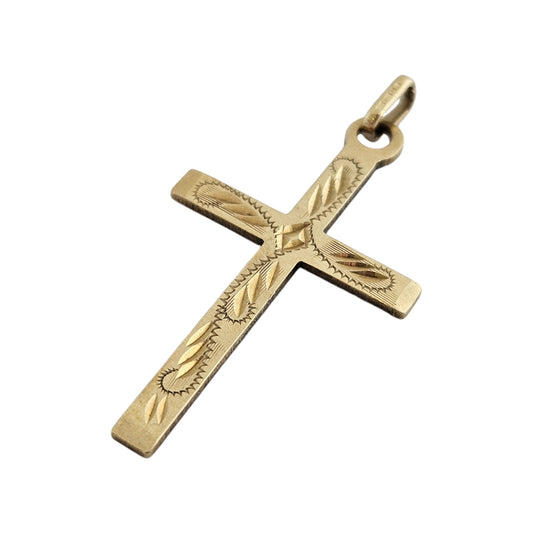9ct 375 Yellow Gold Engraved Cross Pendant L 3.4 cm 1.7 g