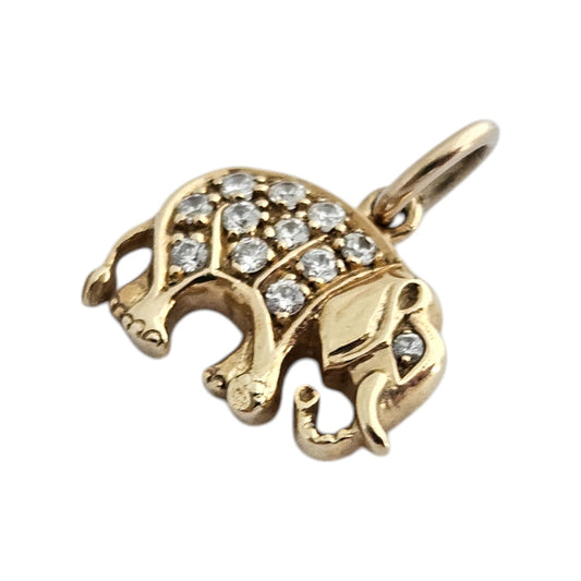 9ct 375 Yellow Gold Elephant Charm with White Stones L 1.4 cm 1.4 g.