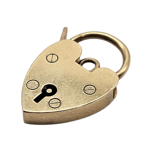 9ct 375 Yellow Gold Heart Shaped Padlock Clasp 1976 L 2.6 cm 3.4 g