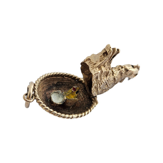 9ct 375 Yellow Gold Nesting Chicken Opening Charm c.1966 L 2.0 cm 6.6 g