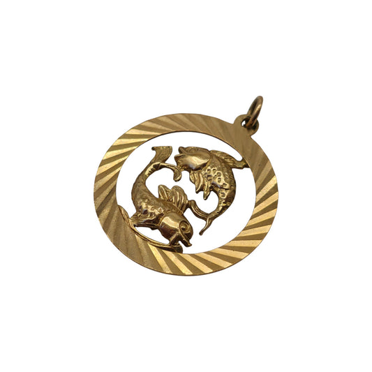 9ct 375 Yellow Gold Pisces Horoscope Charm 1975 L 1.9 cm 1.8 g.