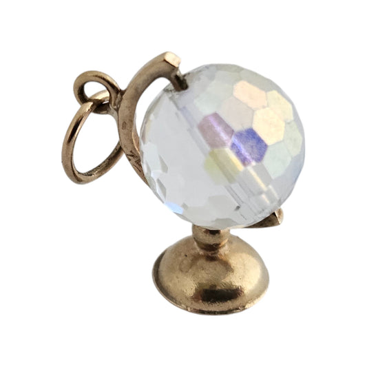 9ct 375 Yellow Gold Spinning Globe Charm with Faceted Crystal 1972 L 1.6 cm 2.3 g.