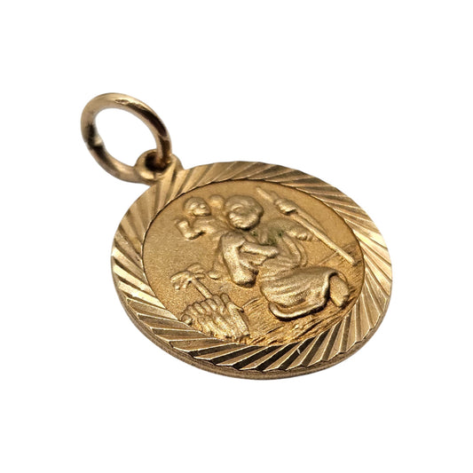 9ct 375 Yellow Gold St Christopher Pendant 1973 L 1.8 cm 2.5 g.