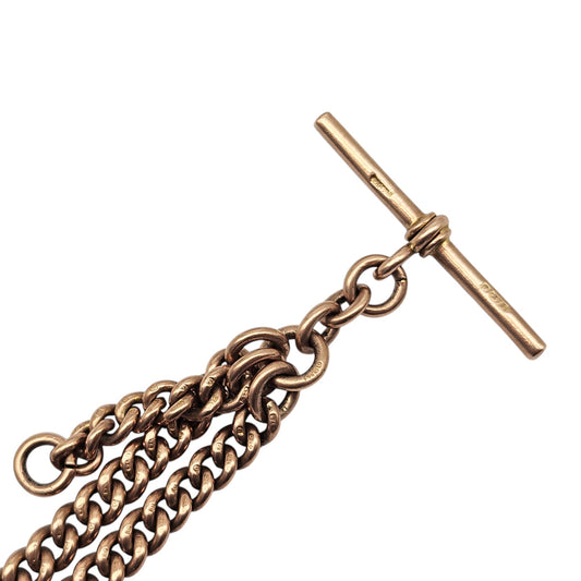 Antique 9ct 375 Rose Gold Double Albert Chain 1924 L 38.4 cm 52.6 g.