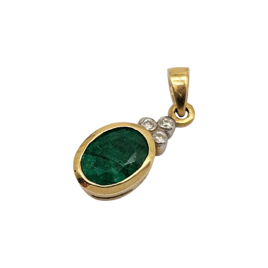 18ct 750 Yellow Gold Emerald & Diamonds Pendant L 1.9 cm 2.1 g.