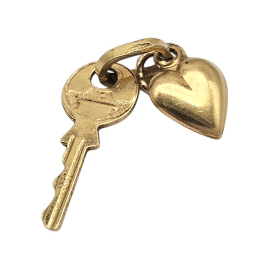 18ct 750 Yellow Gold Key & Heart Charm L 1.7 cm 1.2 g.