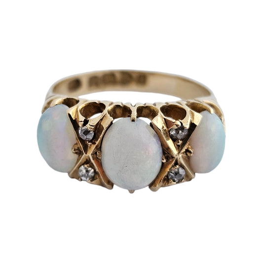 Edwardian 18ct Yellow Gold Opals & Diamonds Ring 1903 Size K 4.1 g