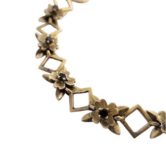 Fancy 9ct 375 Yellow Gold Bracelet with Garnets 1961 L 18.0 cm 10.0 g