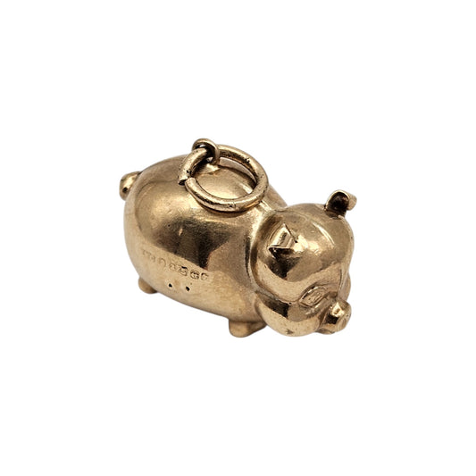 Cute 9ct 375 Yellow Gold Pig Charm 1970 L 1.7 cm 1.2 g.