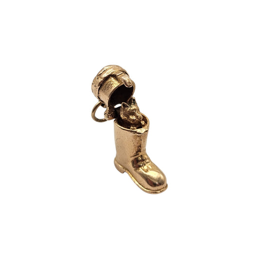 Cute 9ct 375 Yellow Gold Puss In Boot Opening Charm 1966 L 1.6 cm 4.0 g.