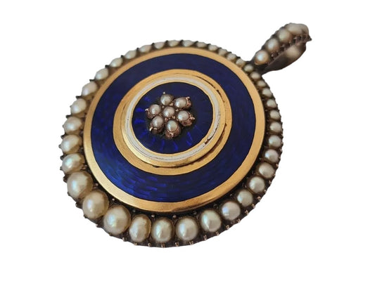 Early 19th Century Gold & Enamel Mourning Locket Pendant Set With Pearls
