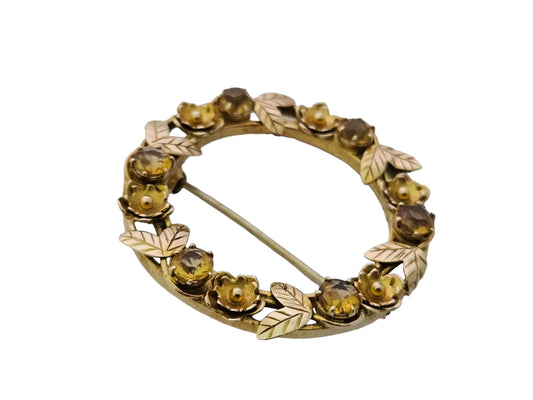 Decorative 9ct Yellow Gold Brooch with Citrine c.1940's L 3.5 cm 7.0 g