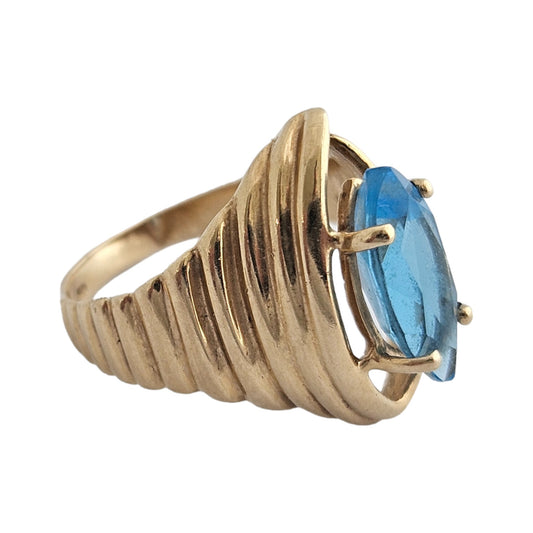 Modernistic 14ct Yellow Gold Ring with Blue Topaz Size L 3.7 g