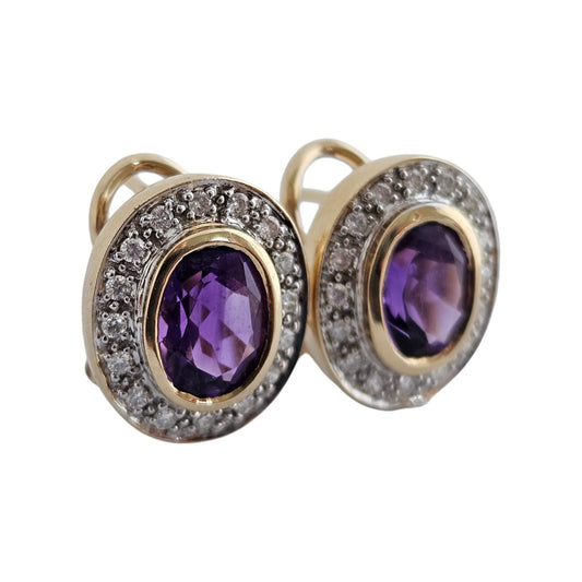 Pair of 14ct Yellow Gold Amethyst & Diamonds Earrings 5.8 g