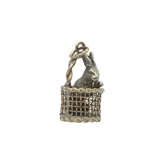 Novelty Antique 9ct Gold & Silver Rabbit In Basket Charm c.1900 L 1.6 cm 3.2 g.
