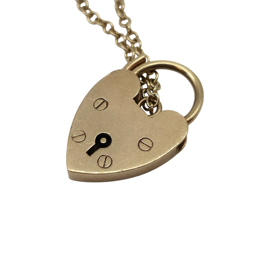 Large 9ct 375 Yellow Gold Heart Shaped Padlock 1969 L 2.5 cm 4.5 g.