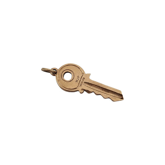 Large 9ct 375 Yellow Gold Key Charm 1970 L 2.6 cm 2.7 g.