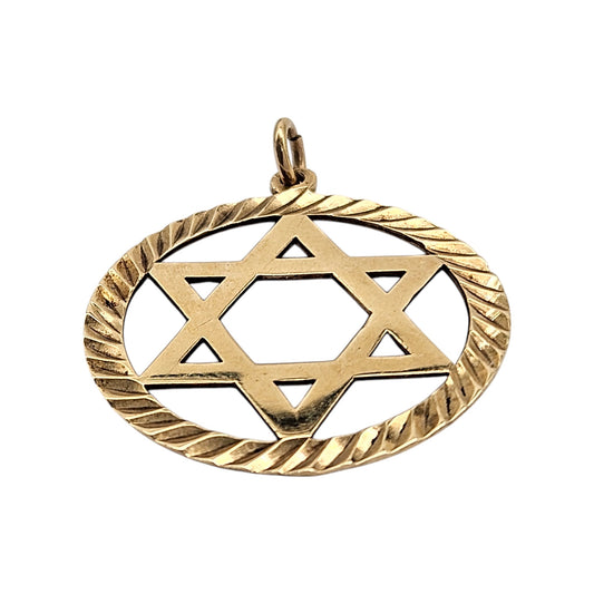 Large 9ct 375 Yellow Gold Star Of David Pendant 1989 L 2.8 cm 2.9 g.