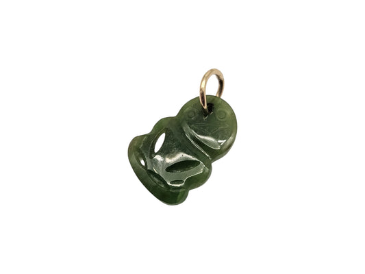 Nephrite & 9ct Gold Maori Hei-Tiki Charm L 1.7 cm
