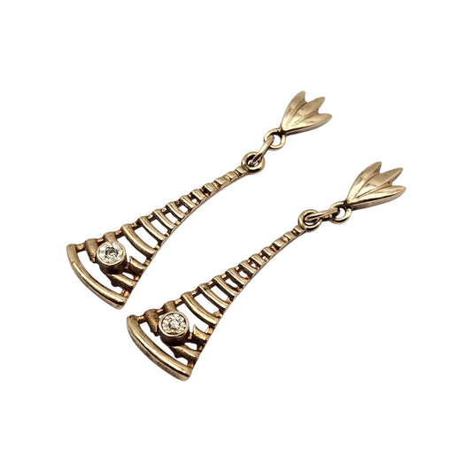 Pair of 9ct Yellow Gold Drop Earrings with Diamonds