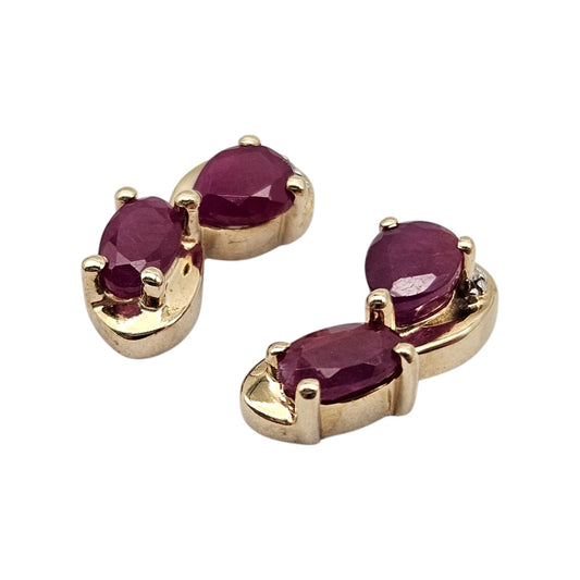 Pair of 9ct Yellow Gold Ear Studs with Ruby & Diamonds