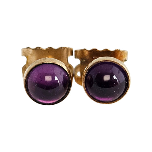 Pair of 9ct Yellow Gold Ear Studs With Cabochon Amethysts