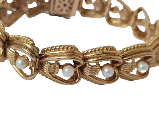 Pretty 9ct Yellow Gold Bracelet Set with Pearls L 17.4 cm 31.5 g