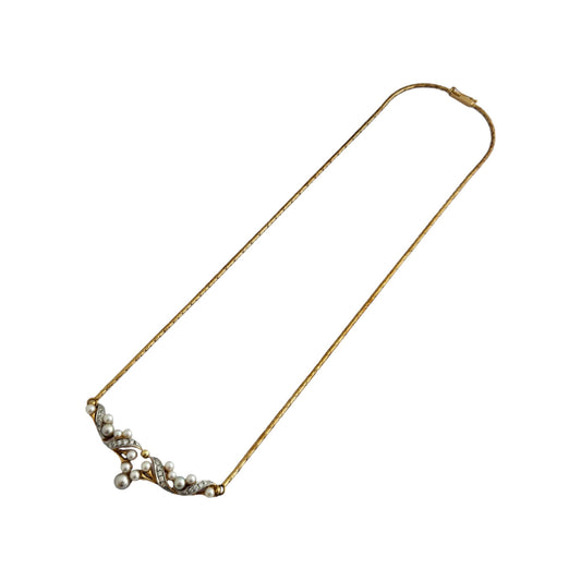 18ct 750 Yellow Gold Necklace with Pearls and Diamonds L 41.3 cm 17.7 g