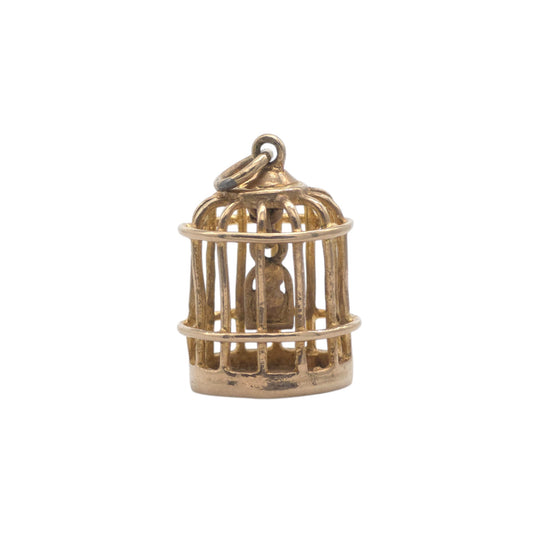 9ct 375 Yellow Gold Bird In Cage Charm 1961 L 1.4 cm 2.5 g.