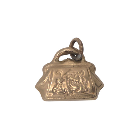 9ct 375 Yellow Gold Handbag Charm 1965 L 1.3 cm 0.6 g.