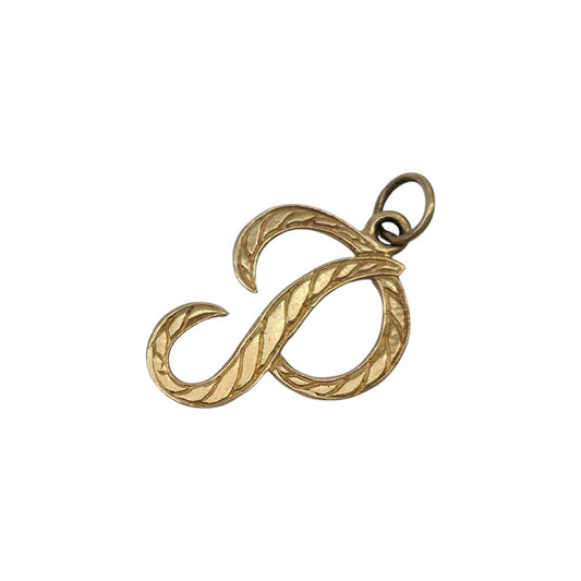 9ct 375 Yellow Gold Initial "P" Letter Charm 1972 L 1.5 cm 0.7 g.