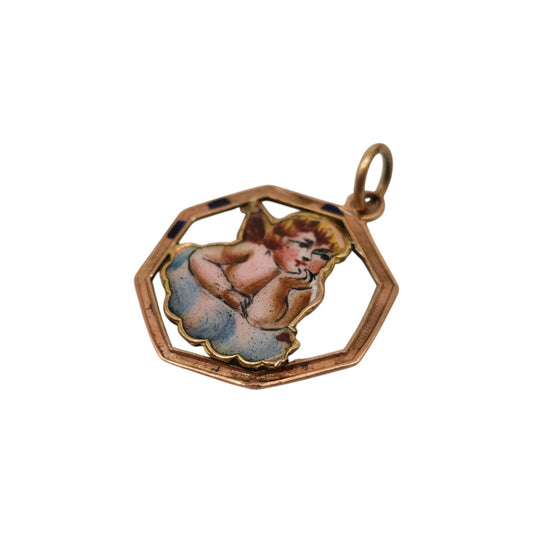 Antique 9ct Rose Gold & Enamel Cherub Charm c.1910 L 2.0 cm 1.7 g.