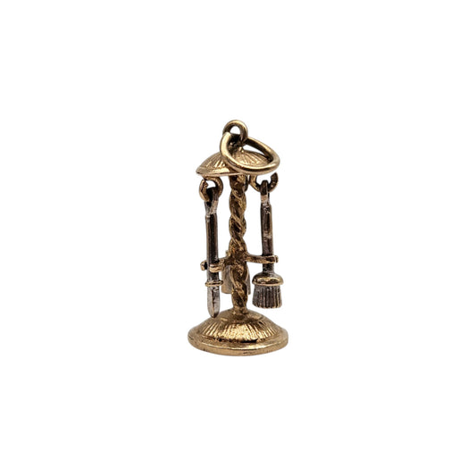 Rare 9ct 375 Yellow Gold Fireplace Tools Charm 1964 L 1.8 cm 2.0 g.