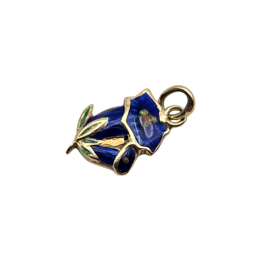 9ct Yellow Gold & Enamel Flower Charm c.1950's L 1.0 cm 0.3 g.