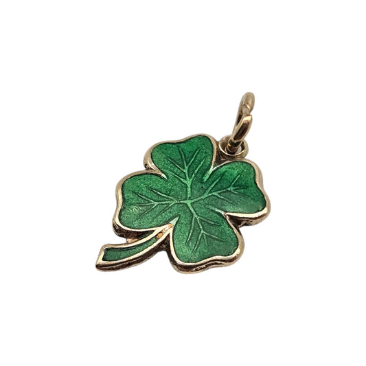 9ct Yellow Gold & Enamel Four Leaf Clover Charm c.1950's L 1.2 cm 1.0 g.
