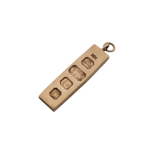 9ct 375 Yellow Gold Ingot Charm 1977 L 2.9 cm 7.9 g.