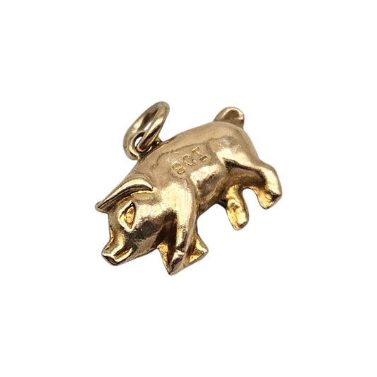 9ct Yellow Gold Pig Charm c.1960's L 1.4 cm 0.7 g.