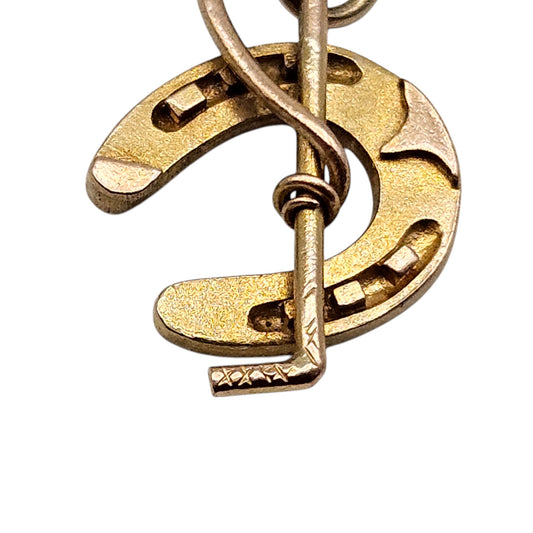 9ct Yellow Gold Horseshoe & Riding Crop Charm c.1960's L 1.5 cm 0.8 g.