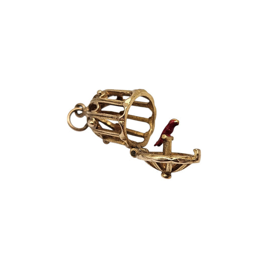 9ct 375 Yellow Gold Parrot In The Cage Opening Charm 1963 L 1.8 cm 3.7 g.