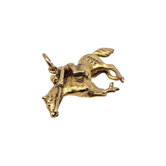 9ct 375 Yellow Gold Racing Horse Charm 1957 L 2.5 cm 4.3 g.