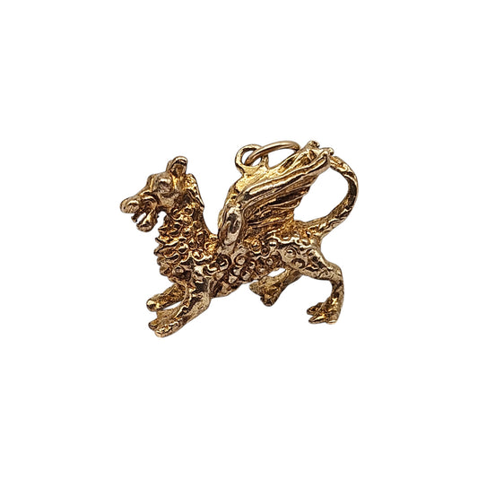 9ct 375 Yellow Gold Welsh Dragon Charm 1978 L 2.0 cm 4.7 g.