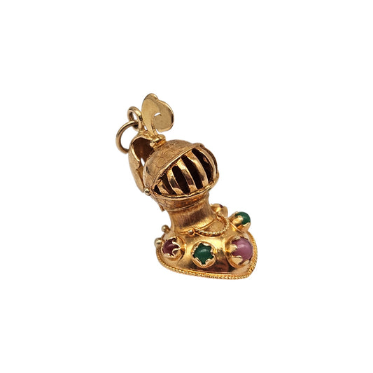 Heavy 18ct Yellow Gold Knight's Helmet Charm L 3.2 cm 6.1 g.