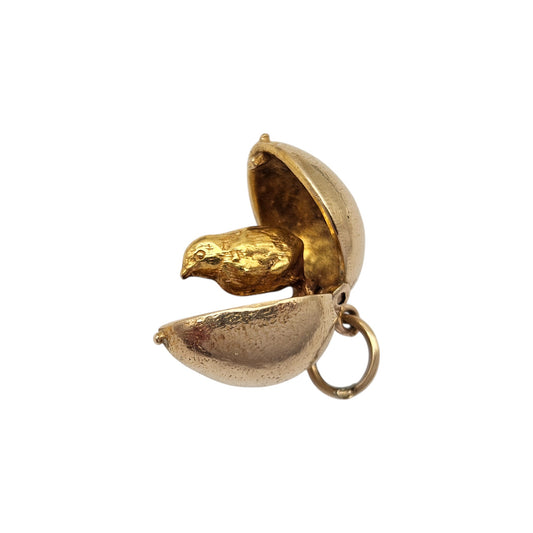 Heavy 9ct 375 Yellow Gold Chick Inside Egg Opening Charm c.1958 L 1.5 cm 6.2 g.