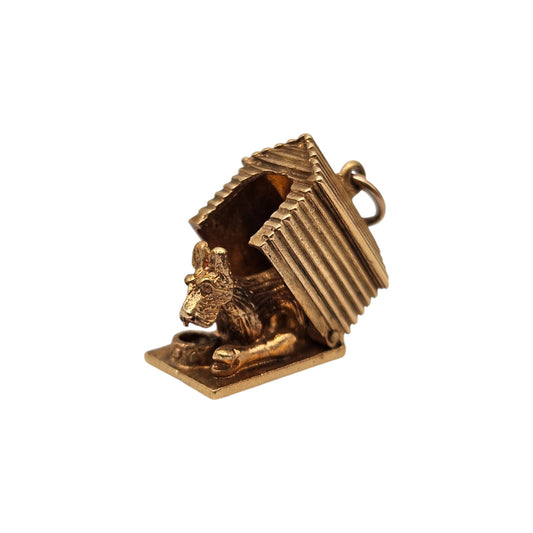 Heavy 9ct 375 Yellow Gold Dog In Kennel Opening Charm 1959 L 1.3 cm 6.7 g.