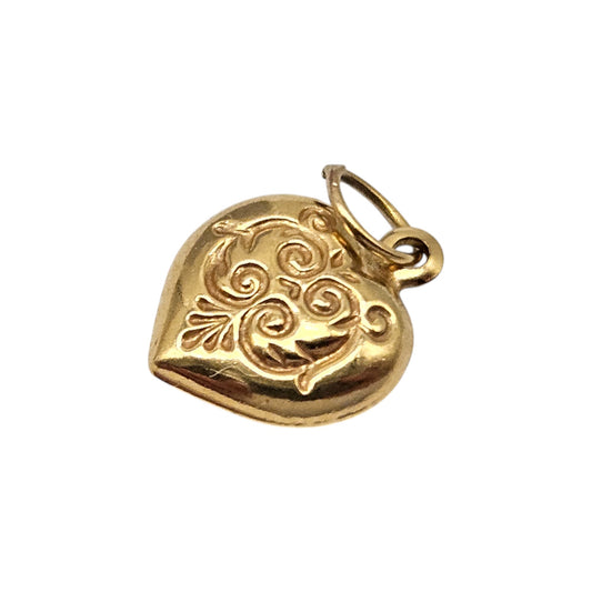 Pretty 9ct Yellow Gold Decorative Heart Charm L 1.0 cm 0.4 g.