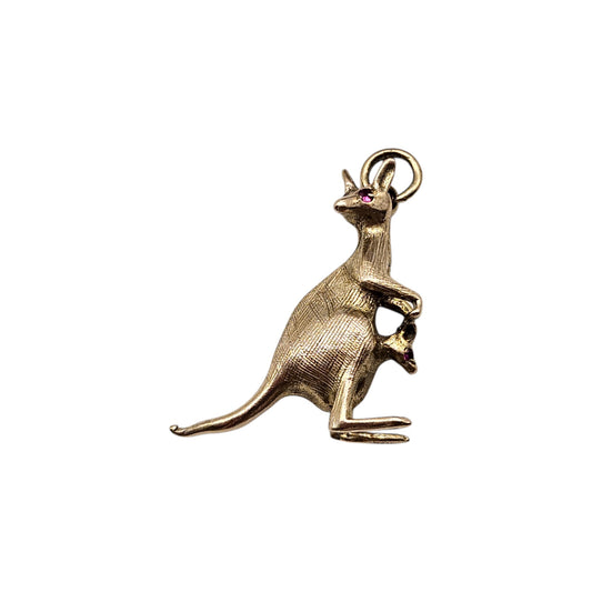 9ct 375 Yellow Gold Kangaroo & Joey Charm With Red Eyes 1965 L 2.4 cm 4.8 g.
